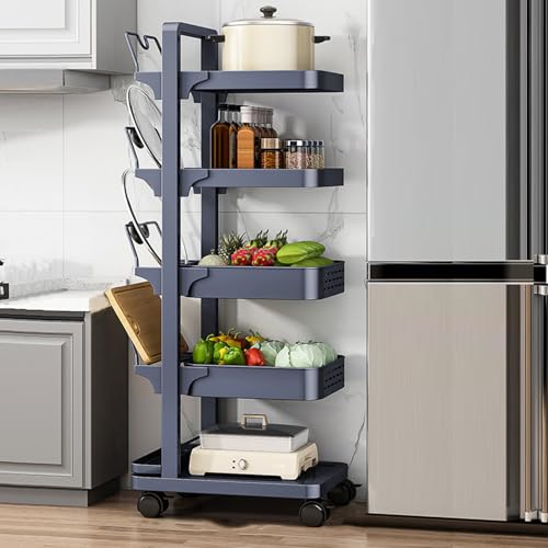 PUSHIZHIGUANG Rotating Storage Rack for Kitchen on Wheels, Cutting Board Pot Lid Storage Rack, Flavoring, Fruit & Vegetable Basket Storage Container for Kitchen (5 Tiers D)