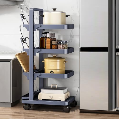 PUSHIZHIGUANG Rotating Storage Rack for Kitchen on Wheels, Cutting Board Pot Lid Storage Rack, Flavoring, Fruit & Vegetable Basket Storage Container for Kitchen (4 Tiers A)
