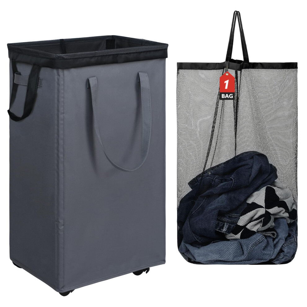Laundry Basket Rolling Slim On Wheels Foldable Waterproof Washing Bin