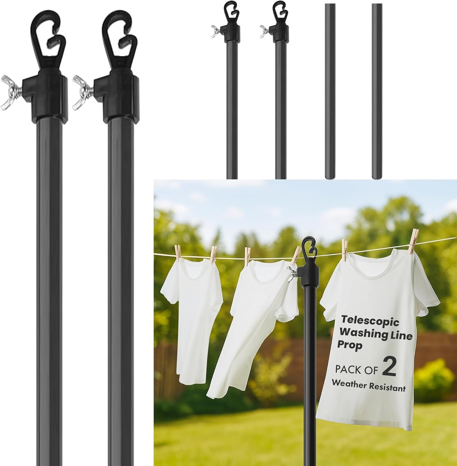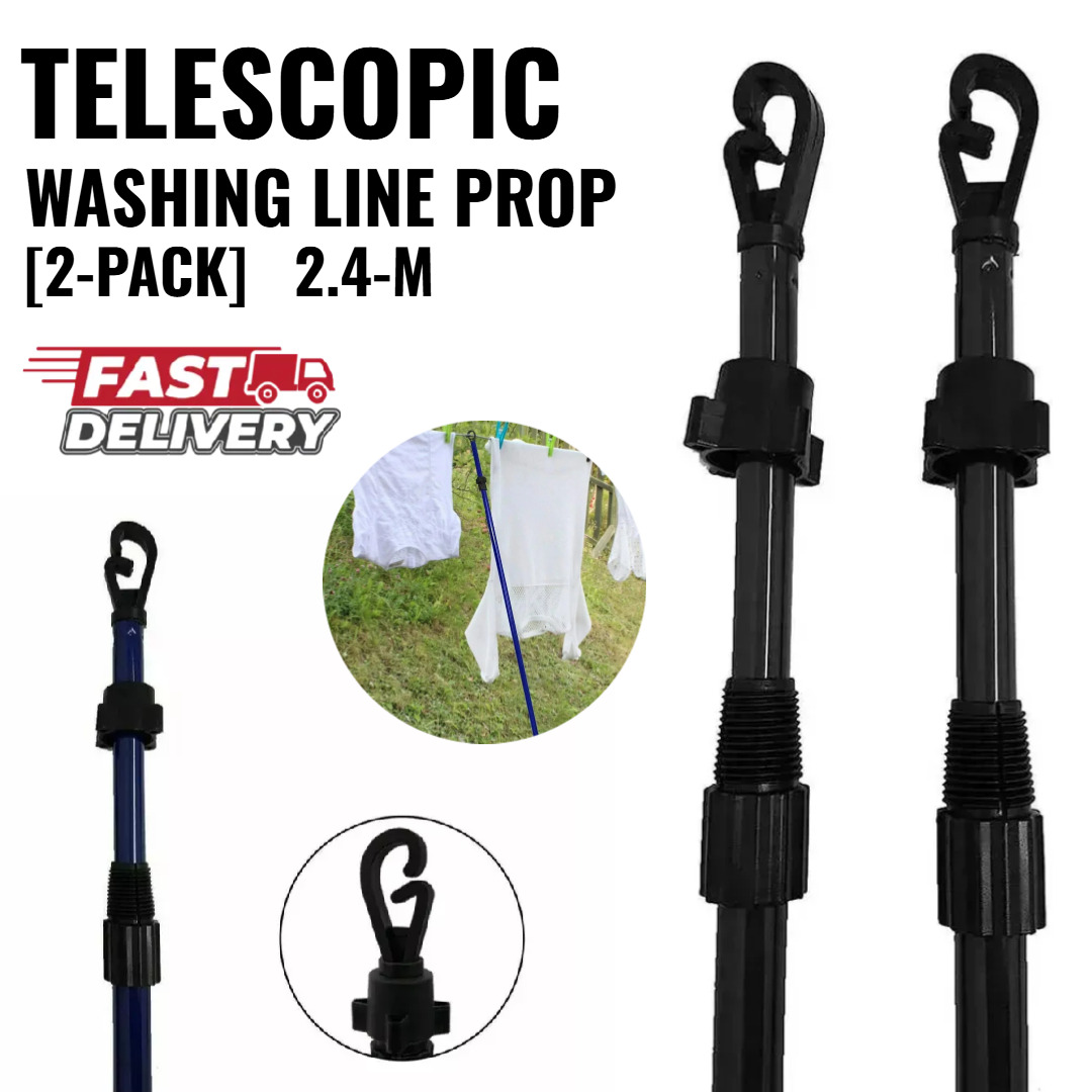 [2 Pack] Washing Line Support Poles–2.4M Heavy Duty Telescopic Props for Outdoor