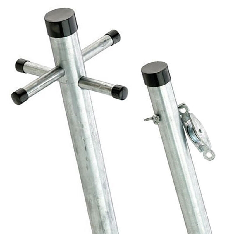 Washing Line Clothes Posts Poles 2.4m Twin Pack Cleat Pulley Standard Galvanised
