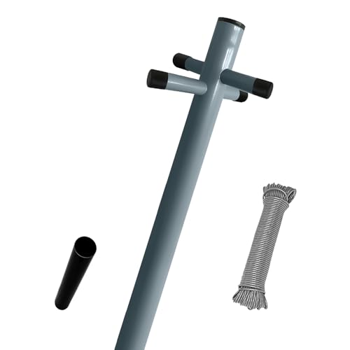 BLADO Heavy Duty Washing Line Poles for Outside - Galvanised Washing Line Post with Socket, 60m Nylon Rope - Metal Clothes Post for Outdoor Use (Grey, 1x)