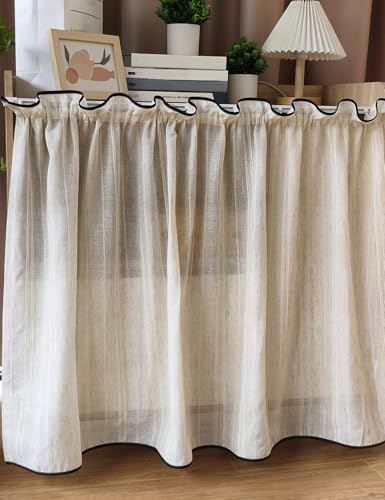 Aeovot Under Sink Curtain Skirt for Closet Without Door, Short Linen Cabinet Curtains for Kitchen Shelves, Privacy Dust-Proof Dishwasher Desk Curtains for Classroom/Pantry/Washing Machine(150x50 cm)