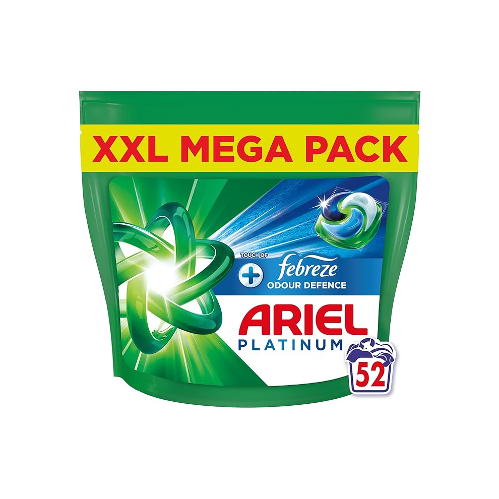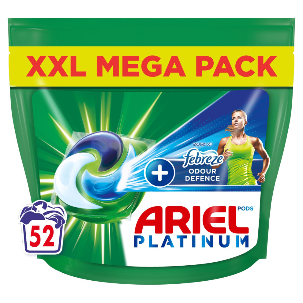 Platinum PODS, Washing Liquid Laundry Detergent Capsules 52 Washes, Touch Of Febreze Odour Defence, Extra Stain & Odour Removal