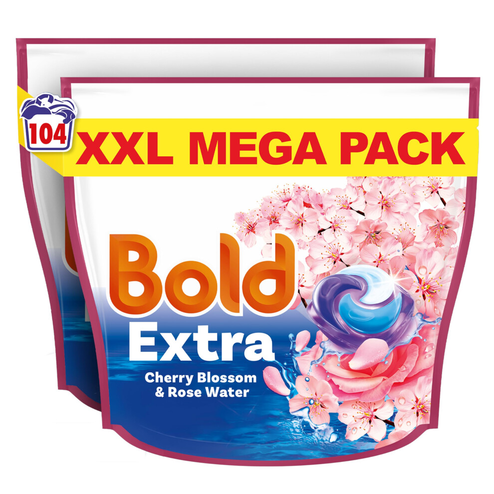 Bold EXTRA PODS? Washing Liquid Laundry Detergent Capsules 104 Washes (52 x 2), Cherry Blossom & Rose Water, Extra Stain And Odour Removal, With Built