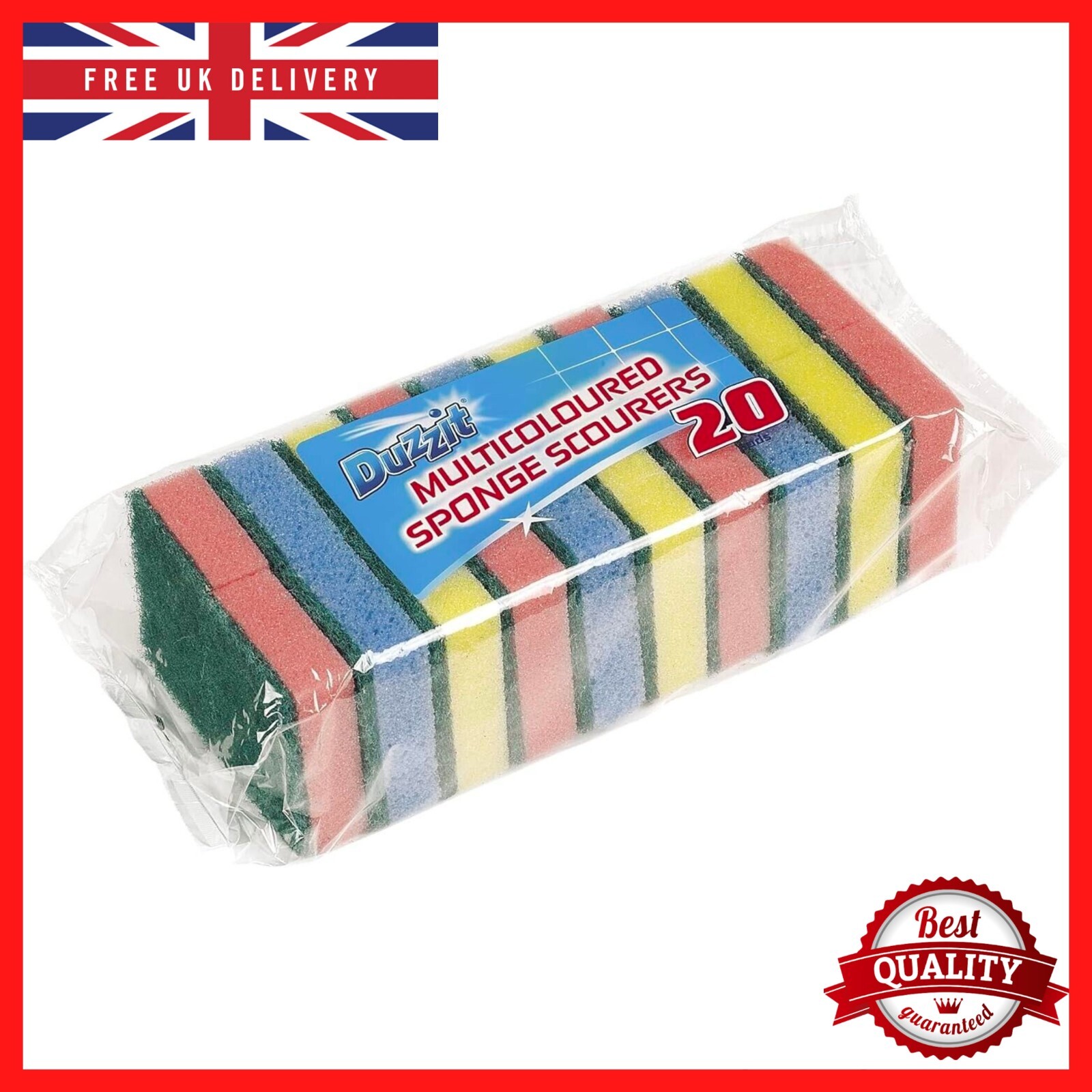 Proff Cleaning & Washing up Sponge Scourers, Foam, Mix Colours, Pack of 20