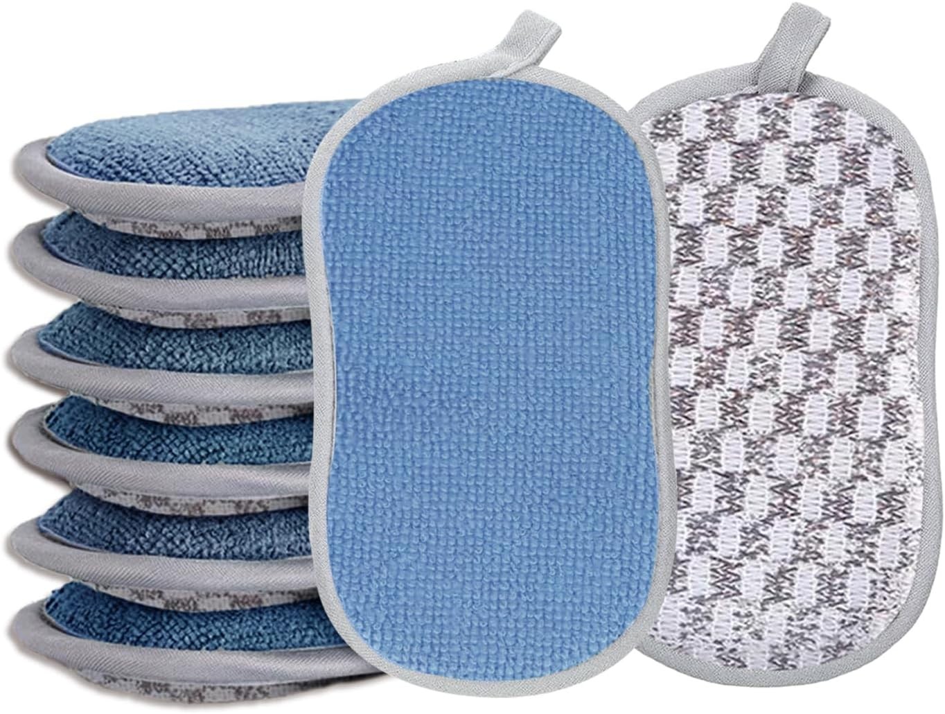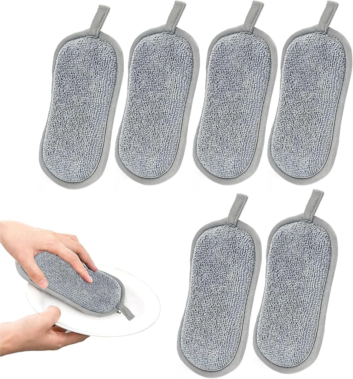 6 Pack Microfibre Dual Washing up Sponge, Non-scratch Scrub Sponges, Reusable L