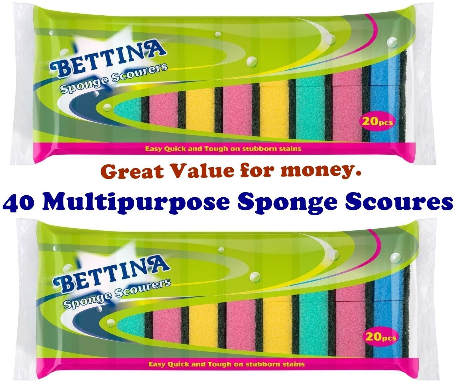 2 x 20 Washing Up Sponge Scourers Kitchen Dish Cleaning Supplies Scouring Pad