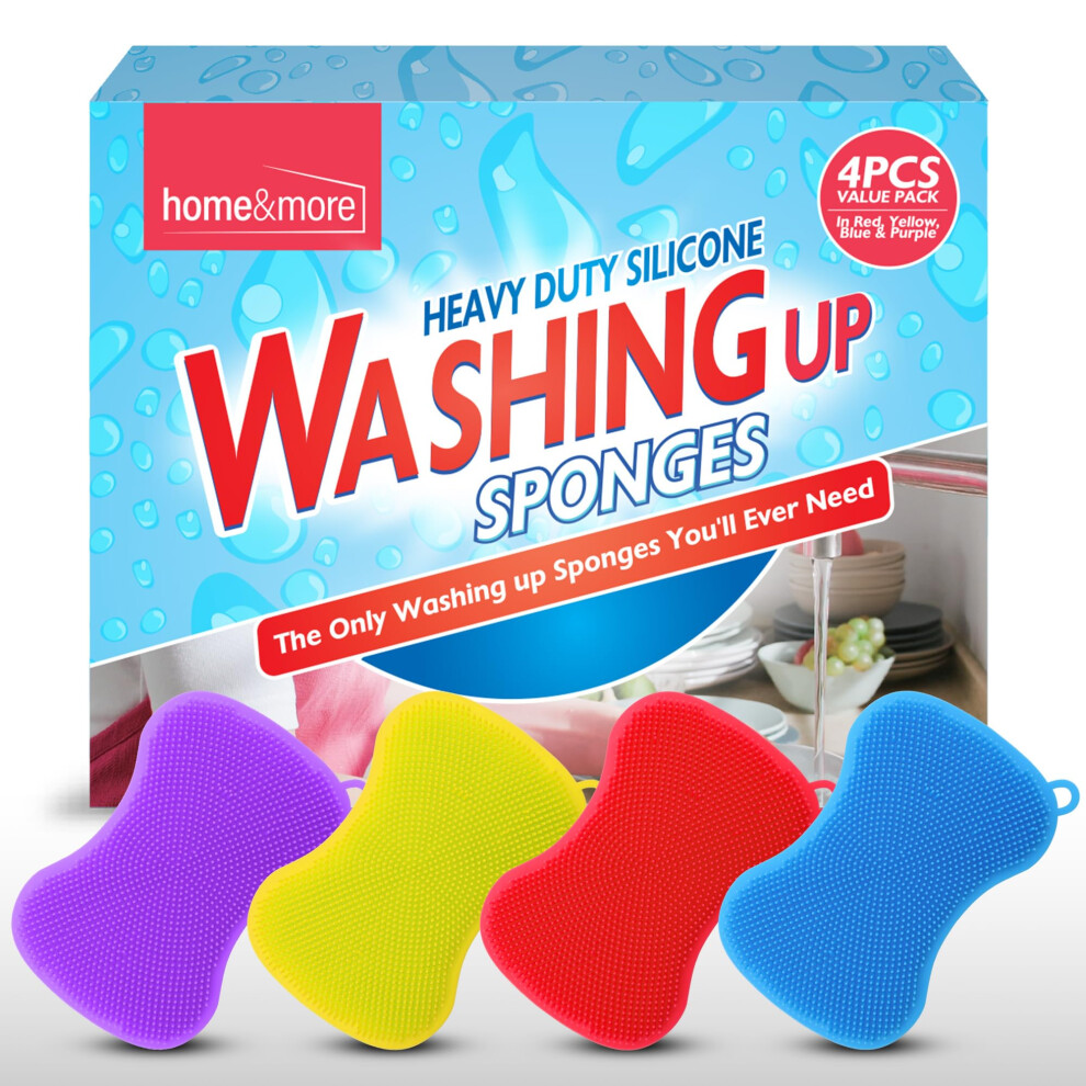 4pk Silicone Dish Washing Up Sponge, Dish Sponge Non- Scratch for Kitchen, Reusable Kitchen Sponges for Cleaning Pots & Pans, Multicolour Washing Up
