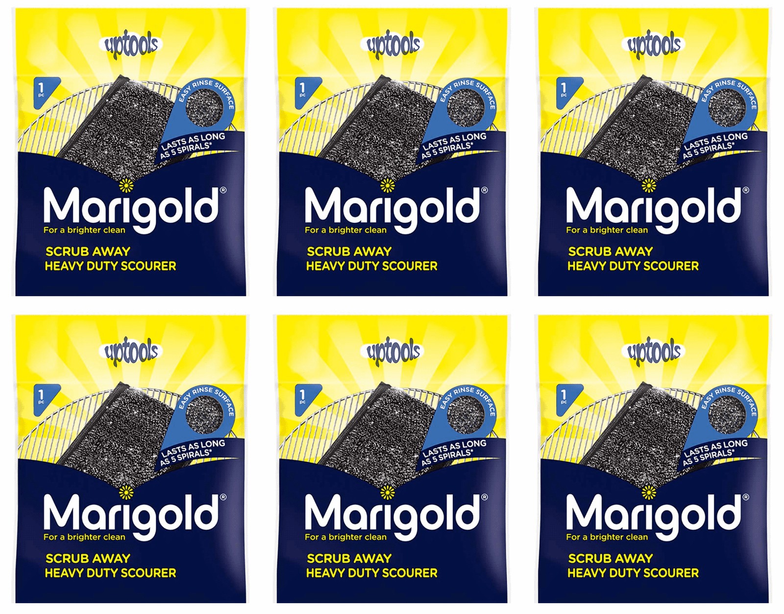 Marigold Scrub Away Heavy Duty Scourer x 6 Stainless Steel Washing Up Sponge Pad