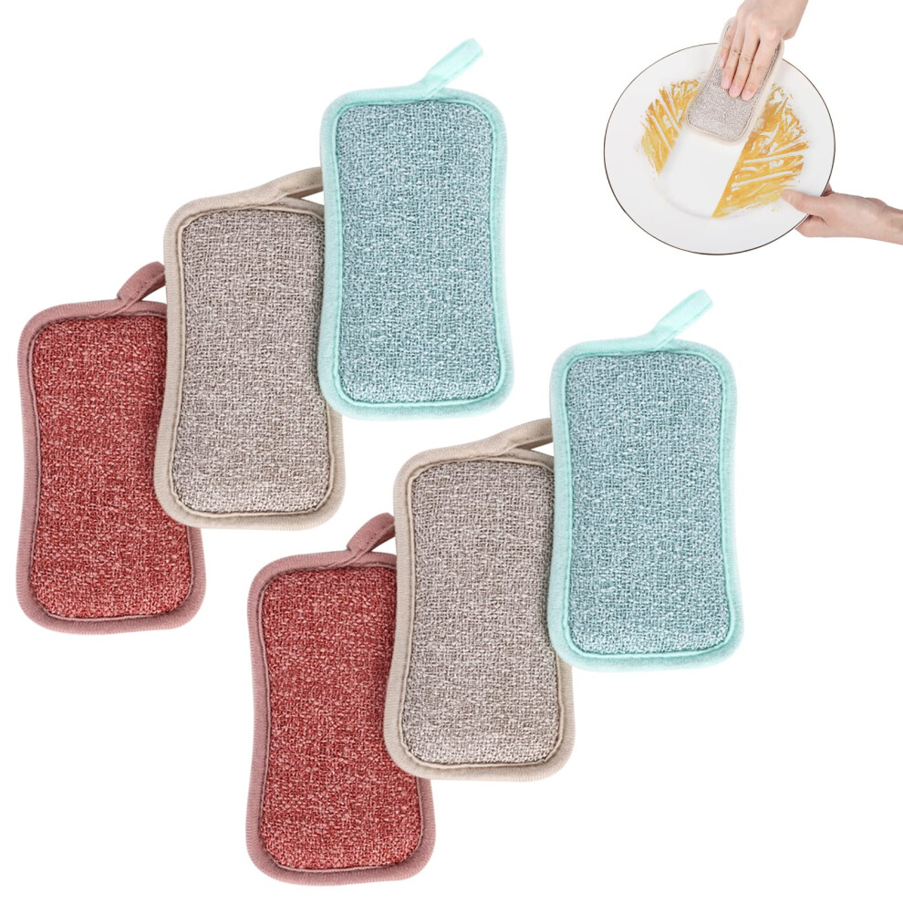 6-Pack Reusable Washing up Sponge, Non-Scratch, Dual-Sided Kitchen and Bathroom