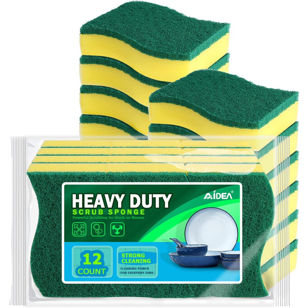 AIDEA Pack of 12 Heavy Duty Scrub Sponges Washing Up Cleaning Scrub Sponge tink Free Dual-Sided Dishwashing Sponge Pots Pans All at Once