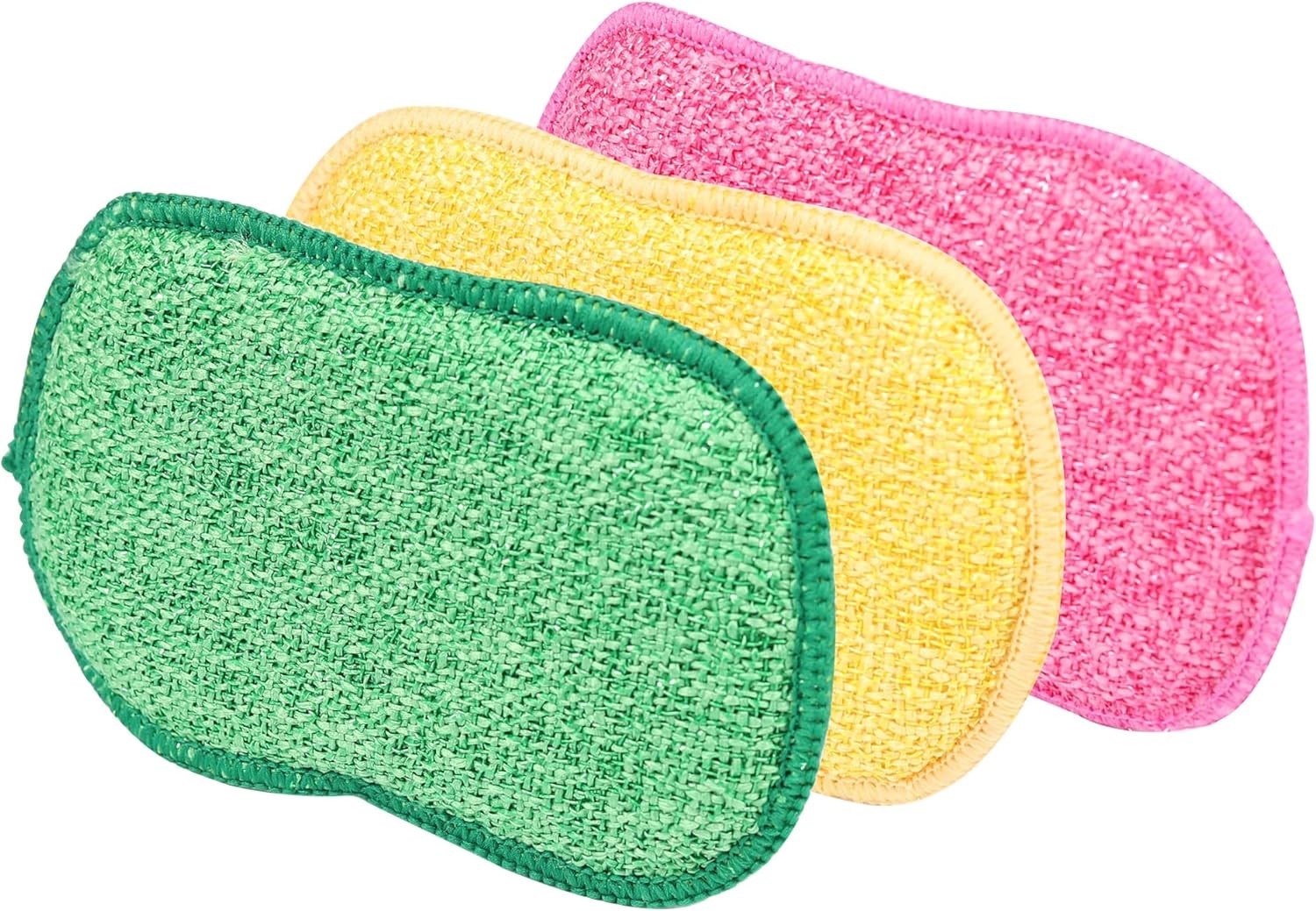 3 Pack Reusable Washing Up Sponge, Non-Scratch, Antibacterial Microfiber Dual-S