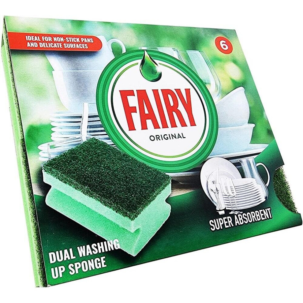 Fairy Original Non Scratch Dual Washing UP Sponge Pack of 6