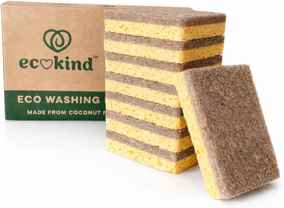 ECOKIND | 8 Pack Eco Washing Up Sponge | Plant Based Compostable Kitchen Dish S