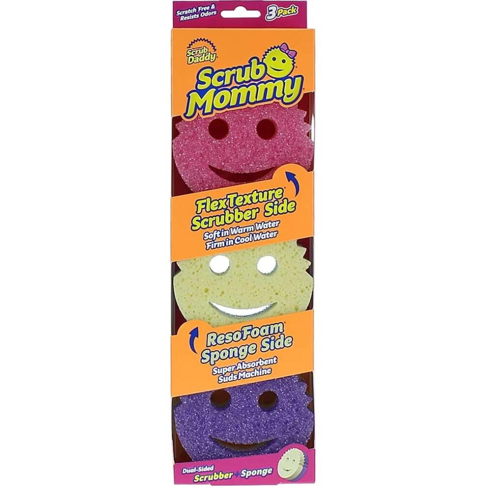 Scrub Mommy Washing Up Sponge - Dual Sided Scrubbing Non Scratch Scourers, Smiley Face Sponges for Cleaning Kitchen & Bathroom, Dish Scrubber,