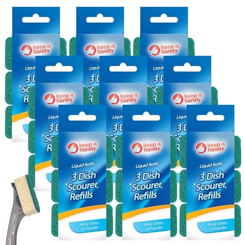 SOL 27pk (9x3pk) Washing Up Sponge Replacement Heads Compatible with Dishmatic Sponge Sponge Washing Up Brush Dish Brush,Scourer Sponge Dishmatic Refill Sponge Non Scratch for Kitchen Cleaning Sponge