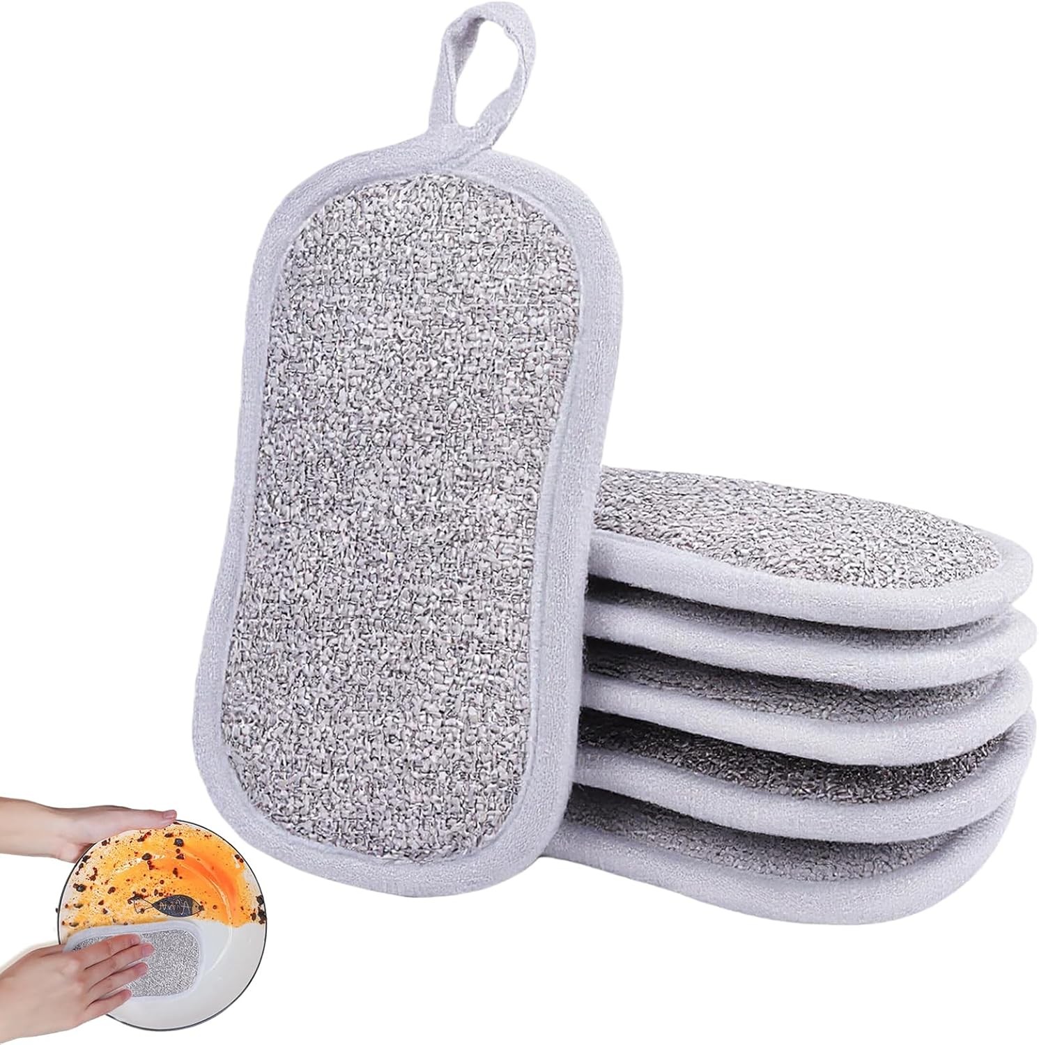 6 Pcs Double Sided Dishwashing Cloth, Reusable Washing Up Sponge, Bathroom Clean