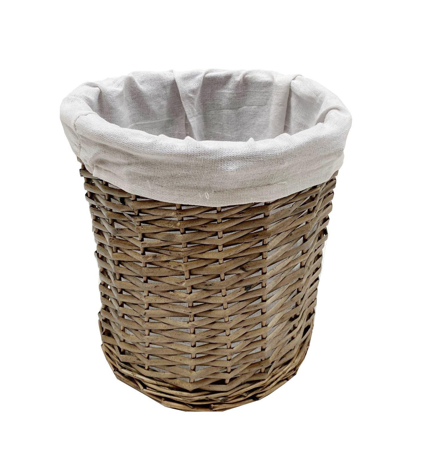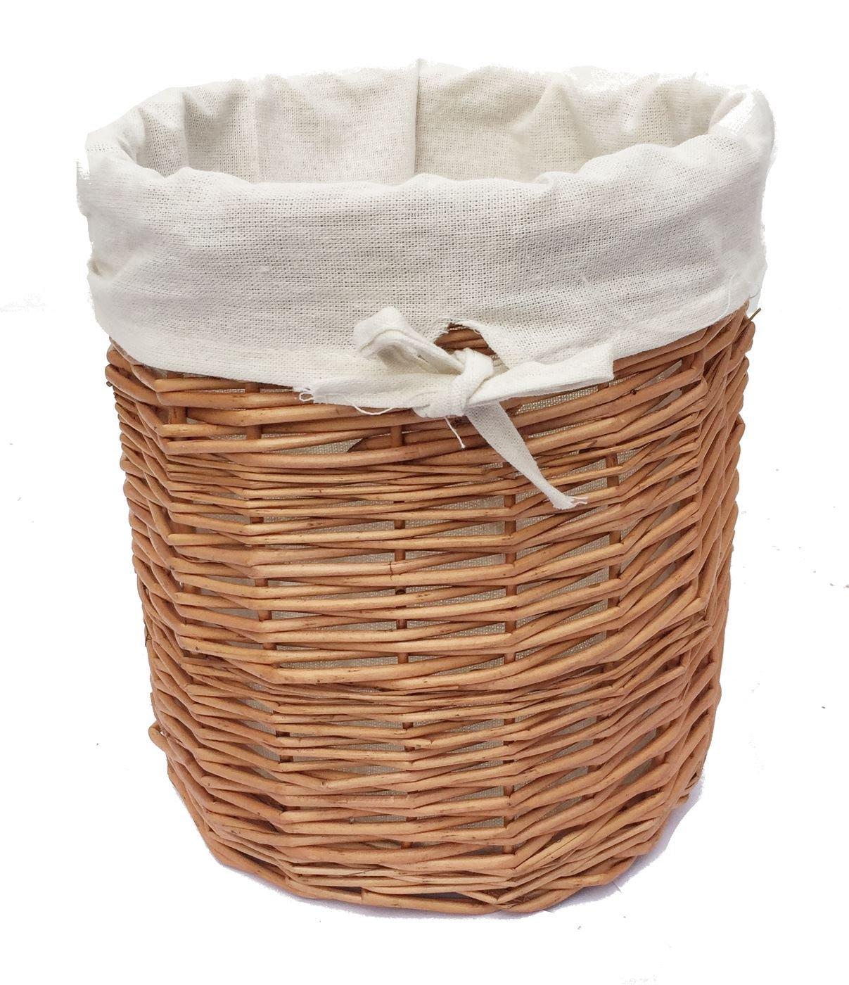 Wicker Round Waste paper Bin With Cotton Lining Natural Bin 26x26.5cm