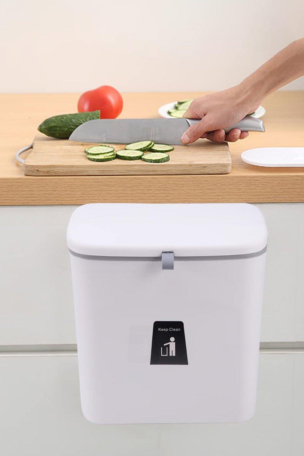 9L White Cabinet Door Hanging Sliding Lid Inner bucket Trash Can Kitchen Waste Bin