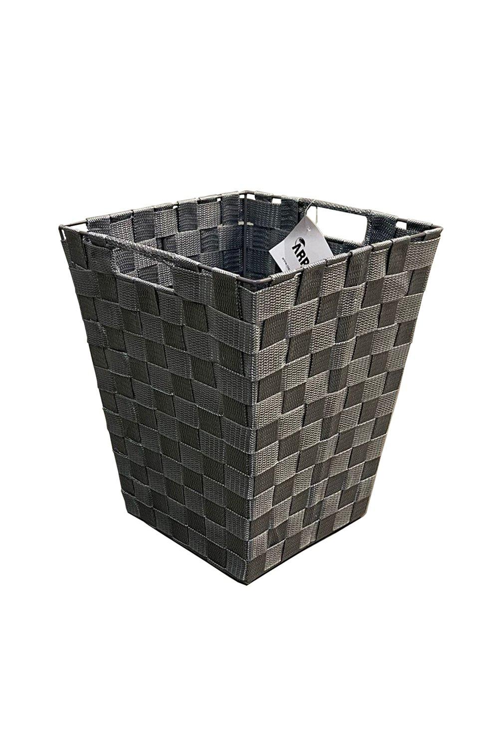 Waste Paper Bin Grey Nylon Plastic Strong Square Storage Basket Ideal for Home, Office, Hotels - Versatile wastebasket for garbage and rubbish