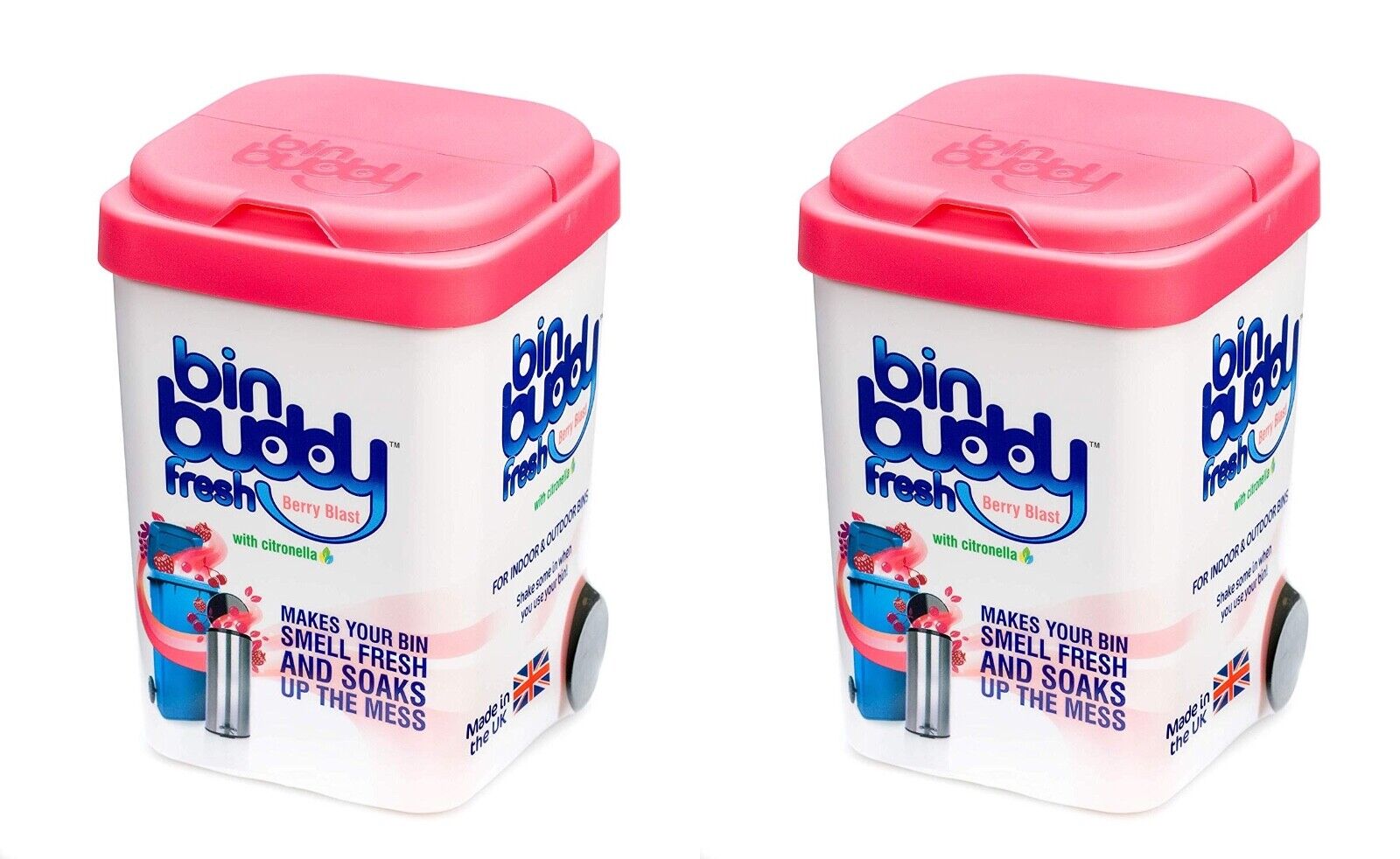 2x Bin Buddy Fresh Berry Blast Wheelie Bin Waste Bag Powder Freshener Scent 450g