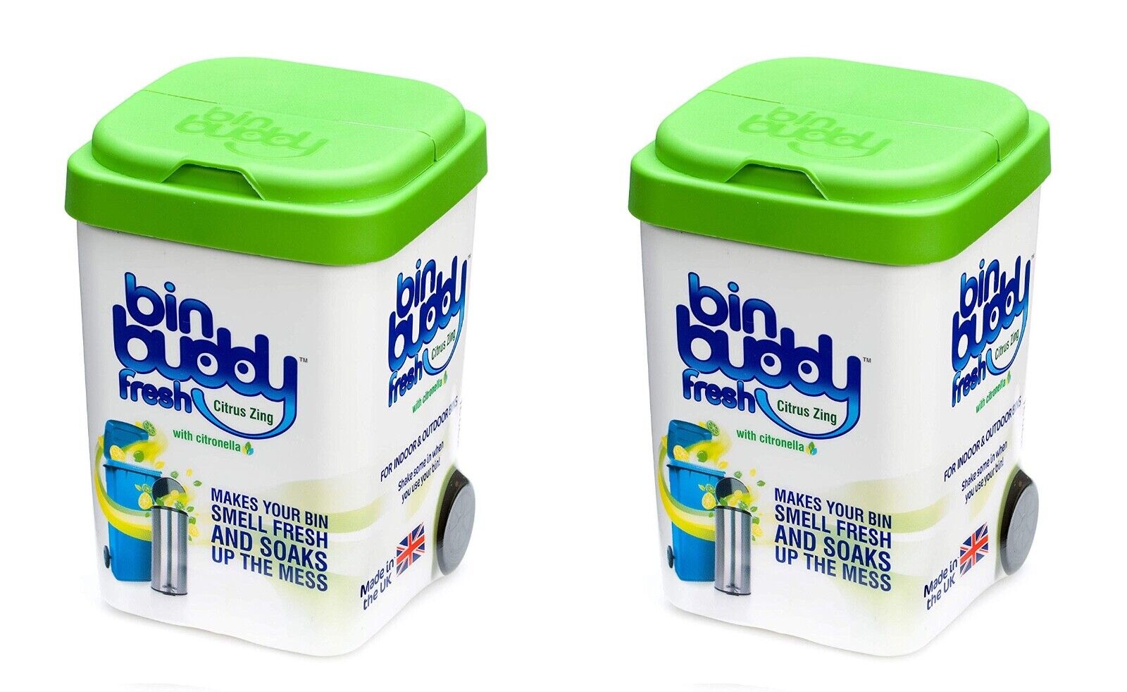 2x Bin Buddy Fresh Citrus Zing Wheelie Bin Waste Bag Powder Freshener Scent 450g