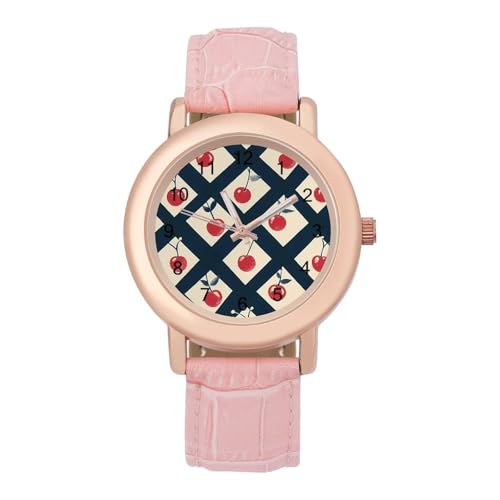Cherry Blue Checkered Women's Custom Watch Fashion Soft Strap Wristwatches Gifts for Birthdays Valentine's Day