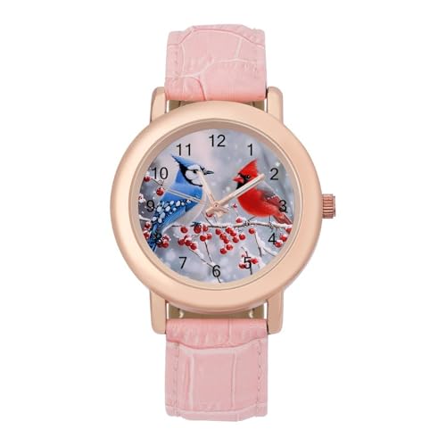 Blue Jay Cardinal Bird Winter Women's Custom Watch Fashion Soft Strap Wristwatches Gifts for Birthdays Valentine's Day
