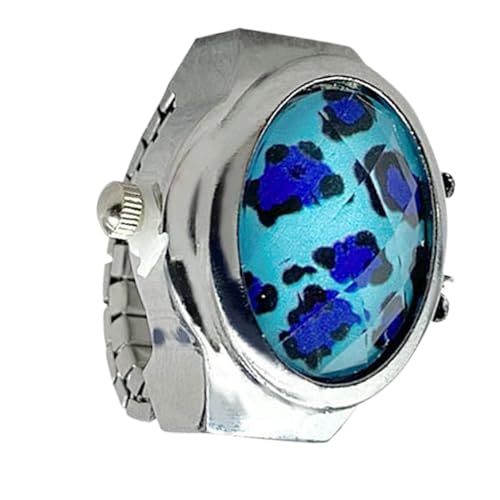 Oidea Mens Womens Finger Watch: Elegant Elastic Strap Ring Watches Round Quartz Analog Watches for Valentine's Day Christmas Birthday Graduation Blue