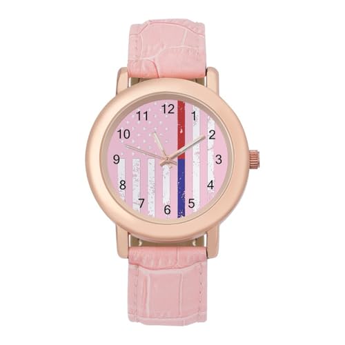 U.S. Thin Line Blue Flag Women's Custom Watch Fashion Soft Strap Wristwatches Gifts for Birthdays Valentine's Day