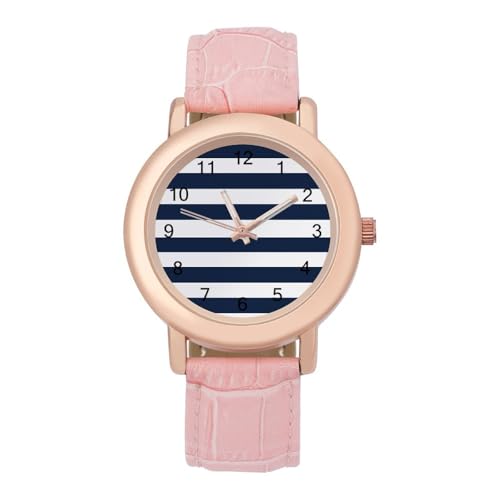 Navy Blue and White Stripe Women's Custom Watch Fashion Soft Strap Wristwatches Gifts for Birthdays Valentine's Day