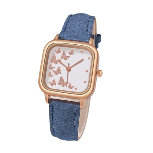 Fashion Women Watch Square Case Wristwatch Leather Strap Quartz Ladies Clock Festival Gift Valentine's Day(Blue)