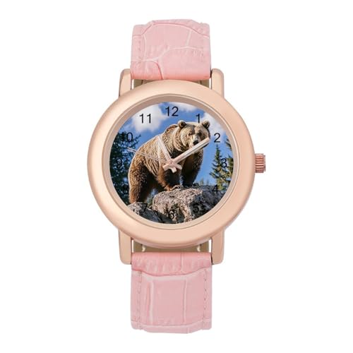 Brown Bear Blue Sky Women's Custom Watch Fashion Soft Strap Wristwatches Gifts for Birthdays Valentine's Day