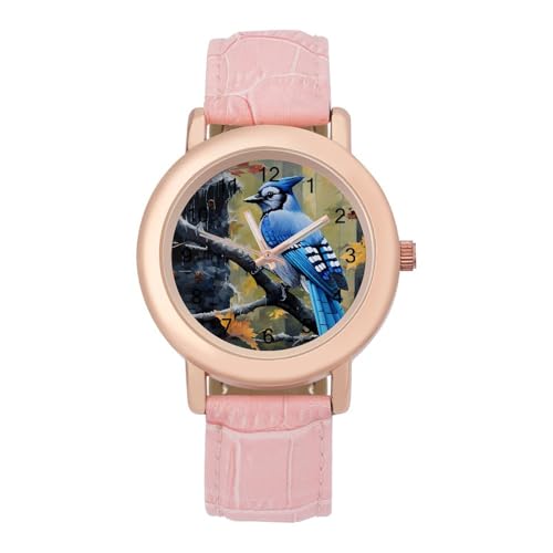 Blue Jay Bird Women's Custom Watch Fashion Soft Strap Wristwatches Gifts for Birthdays Valentine's Day