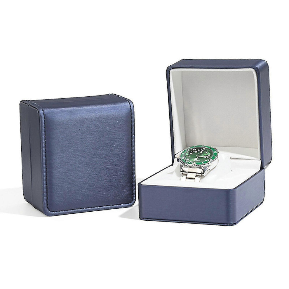 (Blue) Premium Pu Watch Storage Box Single Watch Box For Valentine Men Women Unisex