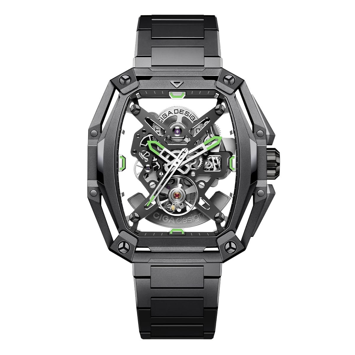 CIGA Design Z Series Hunter Automatic Mechanical Watch, in-House Caliber CD-07, BThree-Layered Octagonal Tonneau, Tapered H-Link Steel Bracelet, Waterproof Timepiece Gifts for Men and Women, Black