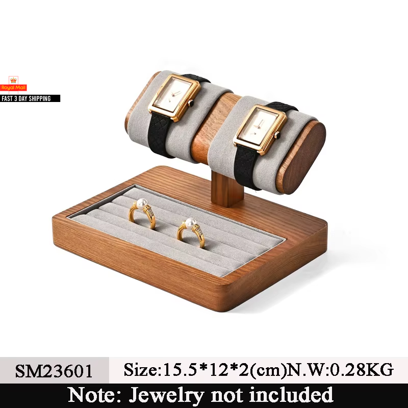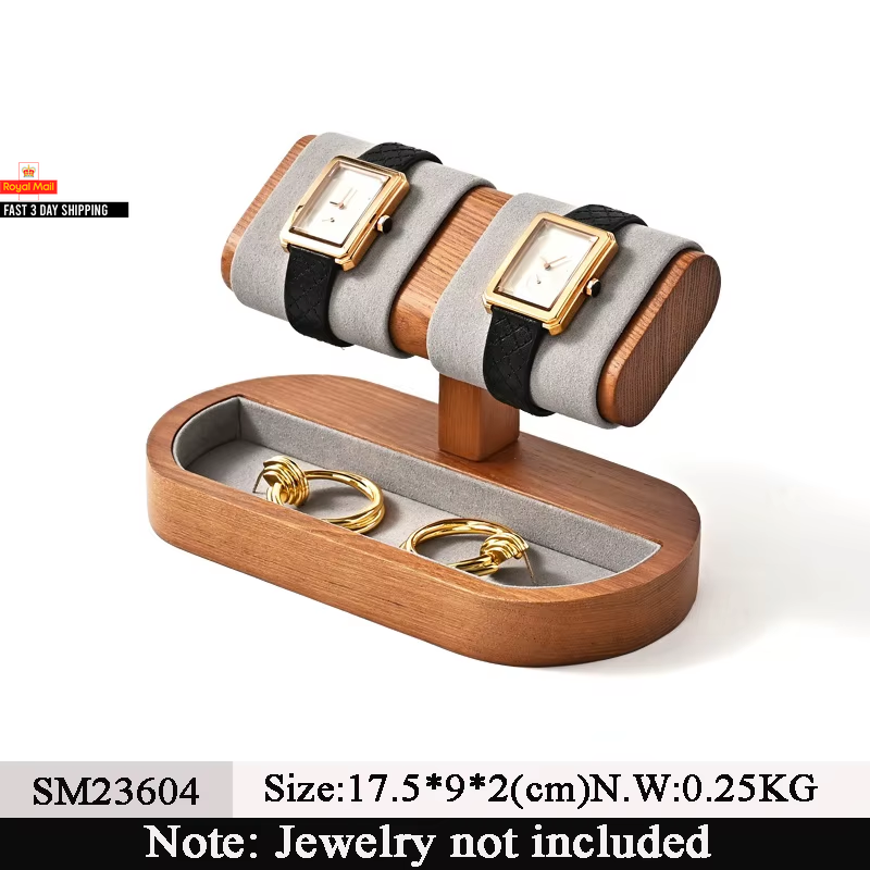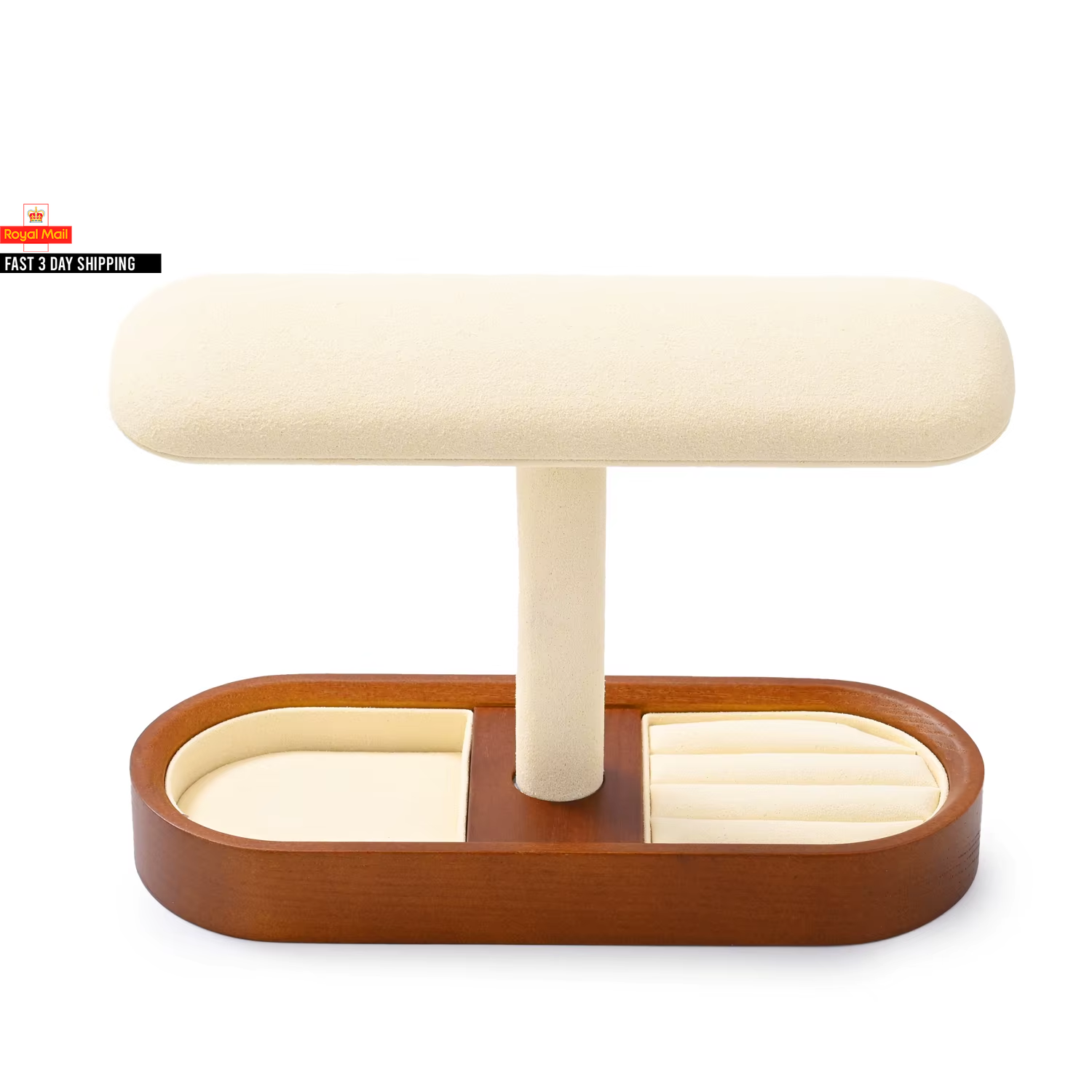Oirlv T Shaped Fashion Wood Watch Display Stand with Microfiber Jewelry Organize