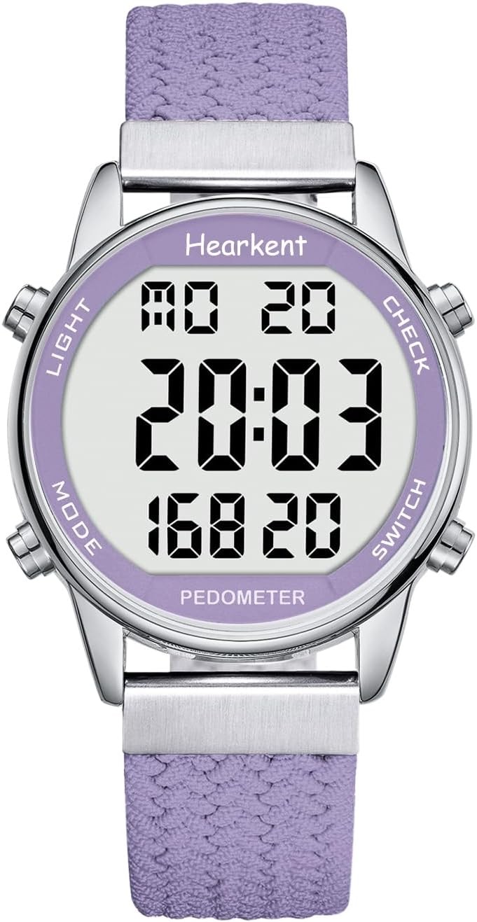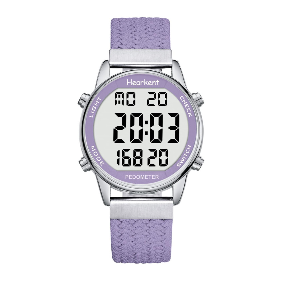 Hearkent Pedometer Watch for Women, Step Tracker with Calories Counter, Non Bluetooth, 30M Waterproof, LCD Large Number Display Wrist Watch for Walking and Daily Activity(Purple)