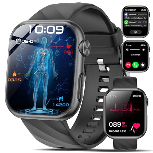Marsyu 2026 Smartwatch ECG+HRV/Uric Acid/BMI/Bluetooth Calls,1.97" AMOLED Screen Smart Watches with Blood Pressure/SpO2/Heart Rate/Sleep Monitor/Messages Reminder Sport Fitness (Obsidian Black)