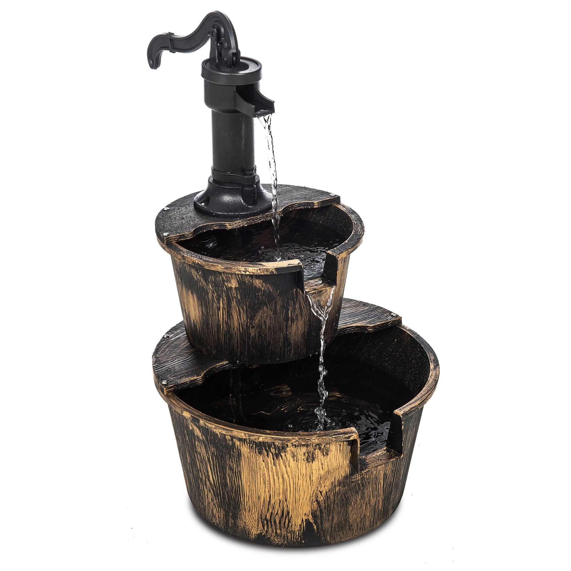 2-Tier Barrel Water Fountain with Electric Submersible Pump