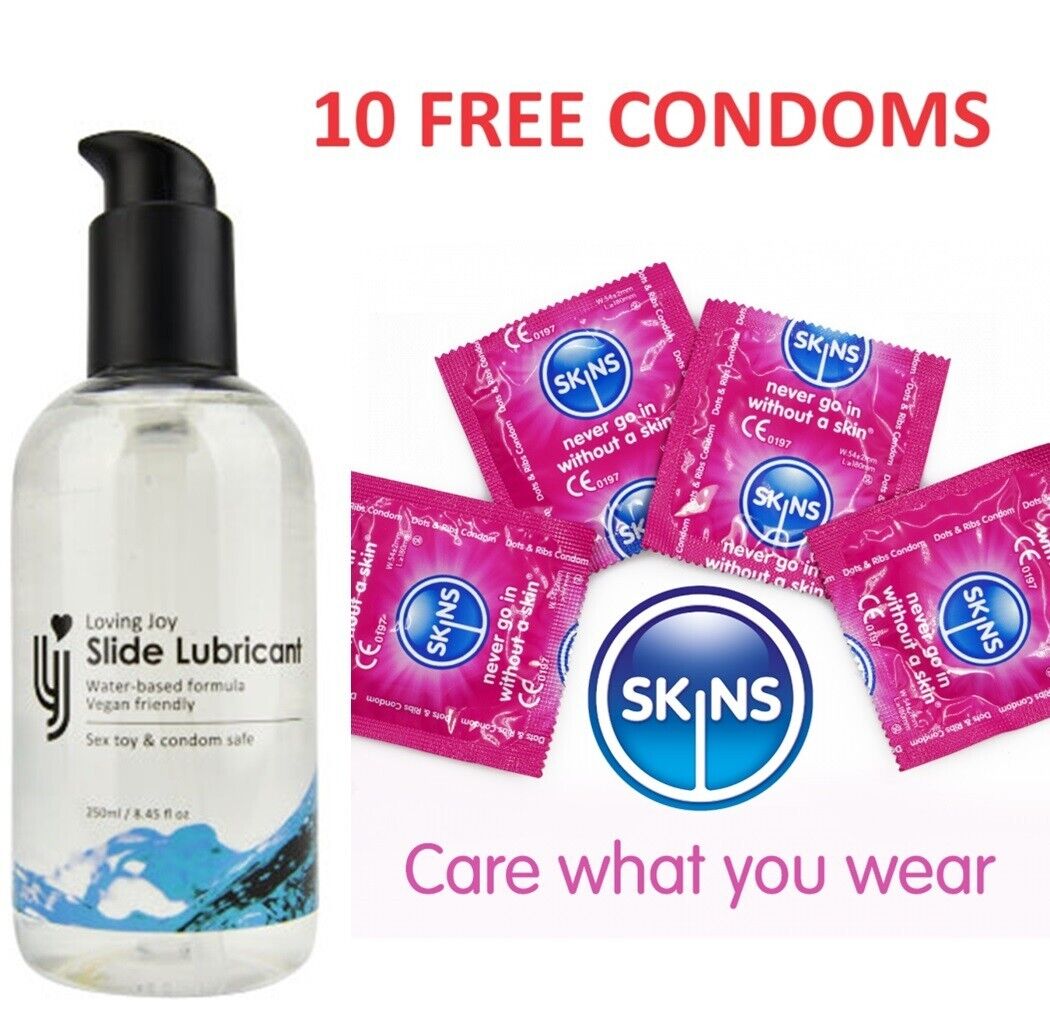 Sex Lube 250ml Water Based Slide Lubricant + 10 Skins Natural Condoms RRP £15.99