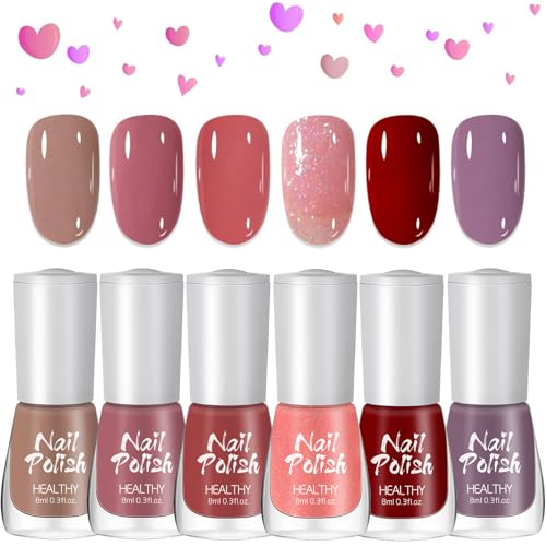 DMQ Nail Polish Set, 6Pcs Quick Dry & Long Lasting Nude Pink Red Nail Varnish - Non-Toxic Water Based Holographic Nail Polish Gel - No Need UV Nail Paint for DIY Nail Art Manicure at Home 8ML