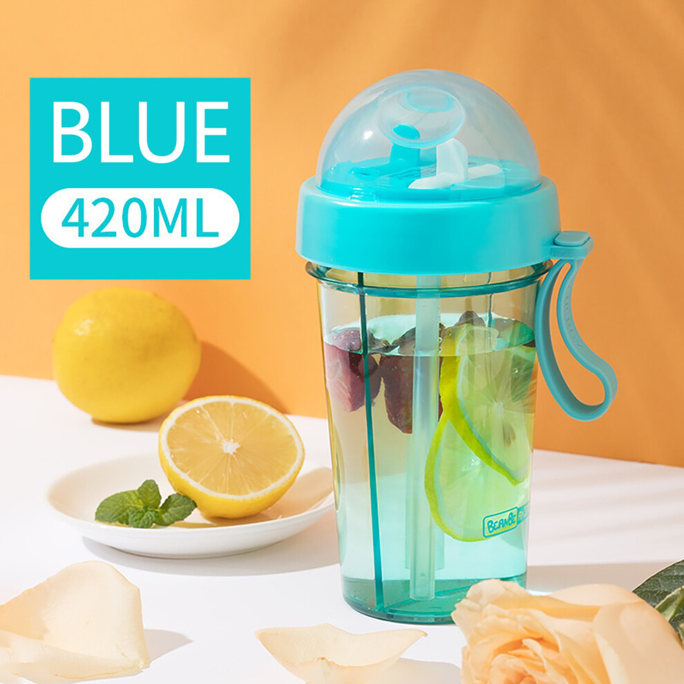 (Blue) 420ml Bottle Plastic Cup Transparent Matte Portable Not Easy To Break Water Cup Outdoor Sports Travel Water Bottle Portable Leak-proof