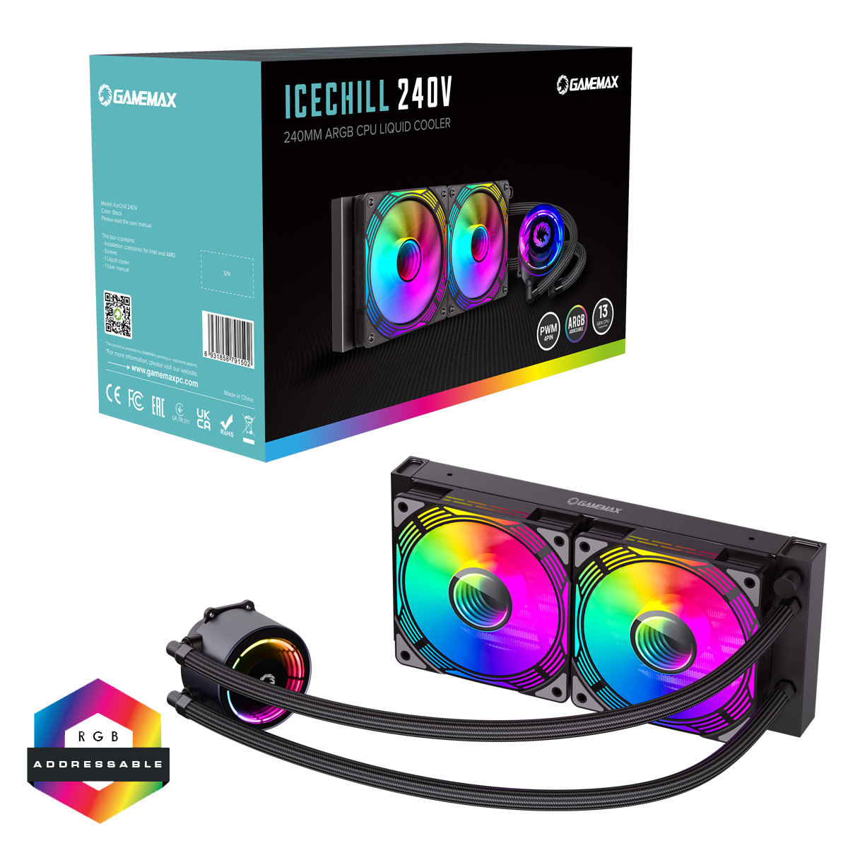 GameMax Ice Chill 240V AIO Black ARGB Water Cooler Desktop PC CPU Liquid Cooling