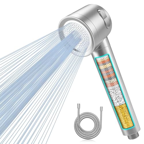 Hard Water Filter Shower Head with 5 Spray Modesï¼Large, Powerful Handheld Shower Head and 1.5m Hoseï¼For Removal of Residual Chlorine