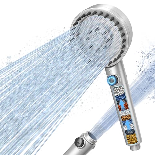 Vinabo Hard Water Filter Shower Head, High Pressure Shower Heads with 6 Modes, Water Saving Shower Head with Pause Switch for Residual Chlorine Remove (Silver/Chrome)