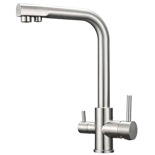 XANAYXWJ 3 Way Filter Kitche Mixer Taps 1 Hole Swivel 3 in1 Kitchen Mixer Tap with Drinking Filtered Water + Brushed Mixer Tap for Kitchen Sink