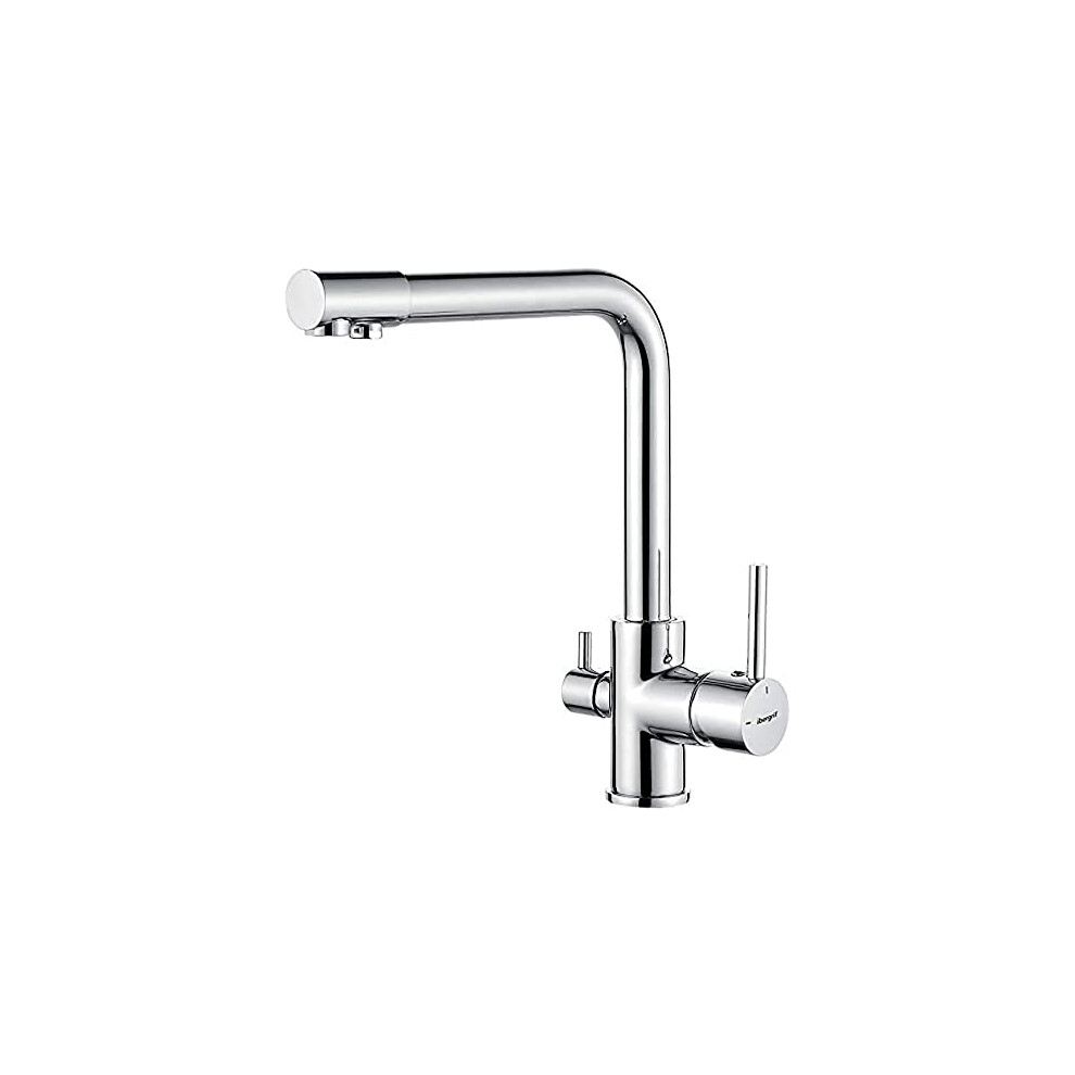 MOCHAMIK Three Way Water Filter Taps Kitchen Sink Kitchen Drinking Taps Sink Mixer Swivel Spout with 2 Handles Brass Kitchen Mixer Tap Chrome,Brushed