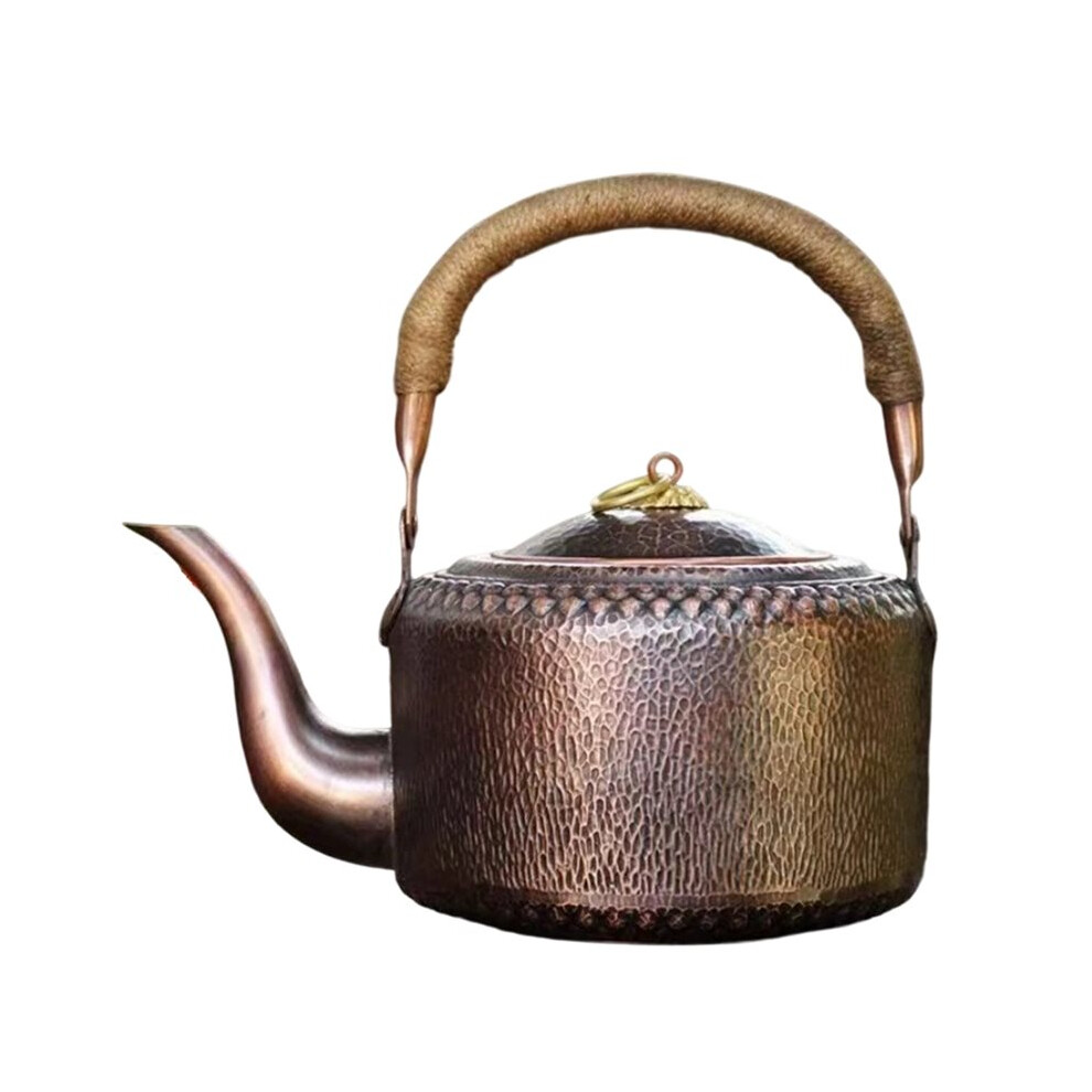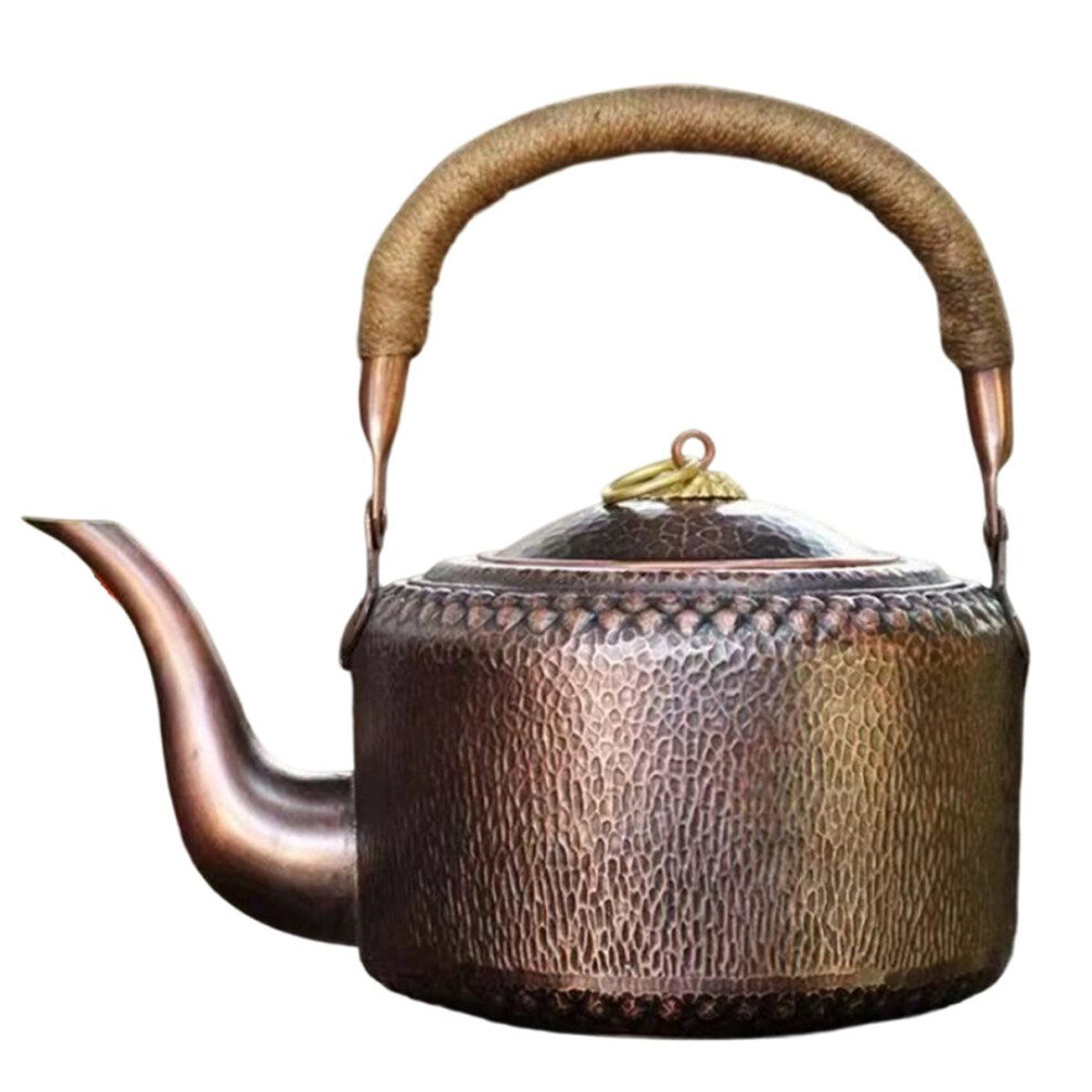 Vintage Copper Coffee Pot,Handheld Hammer Texture Weave with Lid Heat Filter Water Kettle,Handcrafted Teapot